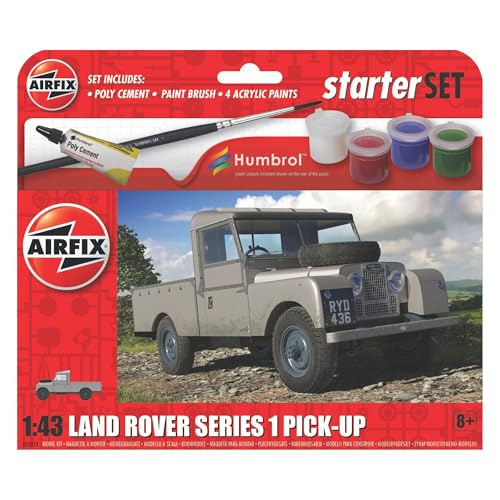 Airfix Starter Set - A55012 Land Rover Series 1 Pick-Up Model Building Kit - Plastic Model Car Kits for Adults & Children 8+, Set Includes Decals, Humbrol...