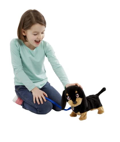 Waggles is your very own wiggling, waggling, walking sausage dog! He walks just like a real sausage dog, wiggling his bum and waggling his tail as he trots along happily. Waggles loves to go for walks with his new owner and with his cheeky smile and cute puppy barks he's your new best friend! Your very own wigglin' walkin' sausage dog! Watch him walk along, waggling and wiggling his bum and tail. Take your new best friend for a walk with his bright red lead. With cute puppy sounds. One supplied. Size H23, W30, D16cm. Batteries required: 4 x AA (included) plus . For ages 3 years and over. Manufacturer's 1 year guarantee. EAN: 5025123312903. WARNING(S):Only for domestic use.