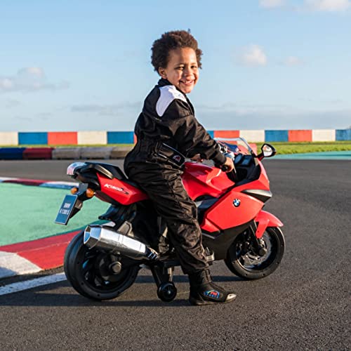 This is the closest kids will get to the real deal with official BMW branding and all the premium features that go into a full sized bike. Kids will feel grown-up with the real key start function, igniting fun engine sounds and the light up dashboard adds to the realism. Flick the front light on, select one of the three gears and cruise away using the foot accelerator and the bike comes equipped with stabilisers to add balance and prevent accidents. Little ones can make use of the reverse and forward function and the 8 pre-installed songs. BMW Licenced bike. Maximum Speed: 4.1km/h. 8 Sound Functions & Light Functions. 12v Rechargeable Battery powers 1x 30w Motor. Stabilisers for balance and Dashboard Display. Wide wheels. Easy grip handles. Size H65.7, W106.8, D106.8cm. Weight 12.62kg. Maximum user weight 30kg. Self-assembly. Batteries required: 1 x 12V (included). For ages 3 years and over. Manufacturer's 1 year guarantee. EAN: 5031470201692. WARNING(S):Not suitable for children under 3 years old. Only for domestic use. To be used under the direct supervision of an adult. To prevent possible injury by entanglement remove this toy when the child starts trying to get up on its hands and knees into a crawling position.
