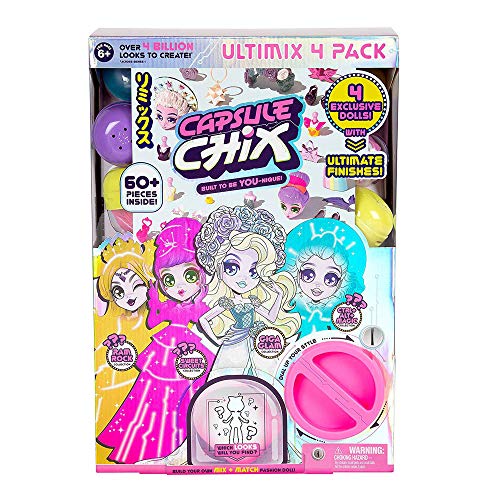 Build your very own one-of-a-kind doll by mixing and matching fashions and accessories to customize a look that's totally yours! Create YOU-NIQUE looks with different hair, faces, tops, bottoms, shoes and accessories. There are over 4 Billion different looks to create when you mix it up across series 1. The Capsule Chix Ultimix Pack contains 20 Surprise Capsules with 60+ pieces. Inside you will find 4 Exclusive Dolls with Ultimate Finishes from the Giga Glam, Ram Rock, Sweet Circuits and CTRL + ALT + MAGIC Collections. 4.5 inch Small Doll with Capsule Machine Unboxing. Each doll has 14 points of articulation – Mix and Match Fashions and Accessories. Pack includes 20 x Capsules, 4 x Dolls, 4 x Doll Accessories, 1 x Lookbook, 4 x Doll Stands For ages 6+. For ages 6 years and over. Manufacturer's 1 year guarantee. EAN: 630996592045. WARNING(S):Not suitable for children under 3 years old. Only for domestic use. To be used under the direct supervision of an adult.