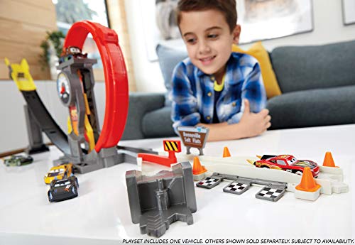 Blast off with Lightning McQueen as he braves extreme competition stunts with the Disney and Pixar Cars XRS Rocket Racing Super Loop Challenge! It features a kick-back launcher that propels cars down the ramp at record-breaking speed as rocket flames spin out of their exhausts. Shoot your vehicle through the loop and then check your velocity with the moving speedometer. Race straight or flip the diverter to take the ramp and jump over other cars in crazy stunt action! XRS Rocket Racing Super Loop delievers extreme Cars competition thrills! Includes a 1:55 scale plastic XRS Rocket Racer Lightning McQueen. Additional vehicles sold separately. Size H100, W100, D100cm. For ages 4 years and over. Manufacturer's1 year guarantee. EAN: 887961819212. WARNING(S):Not suitable for children under 3 years old. Only for domestic use. To be used under the direct supervision of an adult.