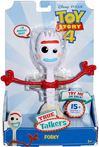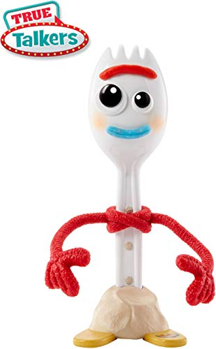 Disney Pixar's Toy Story fans get exciting new movie play with this talking Forky figure! The hilarious Spork really comes to life with moving facial features and iconic phrases like "Ah. Wow. Being a toy isn't so bad, you know – it's kind of nice, " and "Can we stop? My sticks are tired. ". Recreate your favourite adventures with this Toy Story 4 friend. Each delightful character figure comes in movie-inspired relative scale, has a unique talking facial expression and is highly posable for exciting action play. Choose them all for tons of Toy Story adventures! Size H18cm. Batteries required: 3 x button cell (included). For ages 3 years and over. Manufacturer's 1 year guarantee. EAN: 887961773873. WARNING(S):Not suitable for children under 3 years old. Only for domestic use. To be used under the direct supervision of an adult.