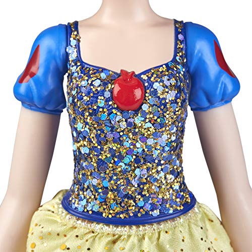 SPARKLY SKIRT AND BODICE: Children will love the fun and fashionable detail of the sparkly printed skirt and glittery bodice that the Royal Shimmer Snow White doll wears