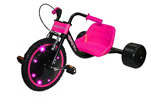 Friends will see you coming on the Elektra Flashing Hog! The lights in the wheel can be set as flashing or constant. Once you've set up your hog the way you want then off you go! Front brakes and flashing lights. For outdoor use only. Size H54, W67, D120cm. Weight 8.5kg. Minimal assembly. For ages 6 years and over. Batteries required: 4 x AA (not included). 1 year manufacturer's guarantee. EAN: 5021813102496. WARNING(S):Not suitable for children under 3 years old. Only for domestic use. To be used under the direct supervision of an adult. Protective equipment (helmet, knee pads and elbow pads) should be worn, not to be used in traffic.