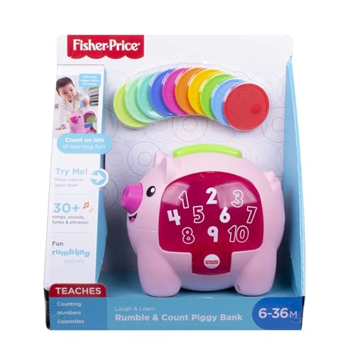 Fisher-Price Laugh & Learn Count & Rumble Piggy Bank, musical baby toy with fun motion action, GJC68