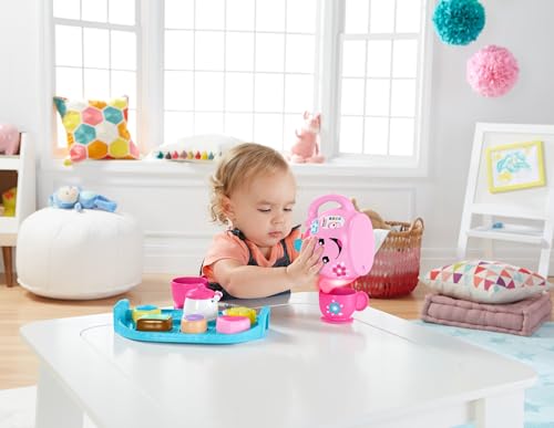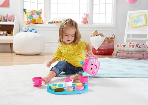 - INTERACTIVE TOYS FOR 18 MONTH OLD - Introduce your tiny tea lover to sharing and manners with the Fisher-Price Laugh & Learn Sweet Manners Tea Set Kids! Our kids tea set includes a magical light-up tea pot, two tea cups, a sugar bowl and a tray full of puzzle-play treats. An ideal set of toys for 2 year old girls and boys! Watch on as the spout on the teapot toy lights up and plays fun songs as your toddler 'pours' out their tea!