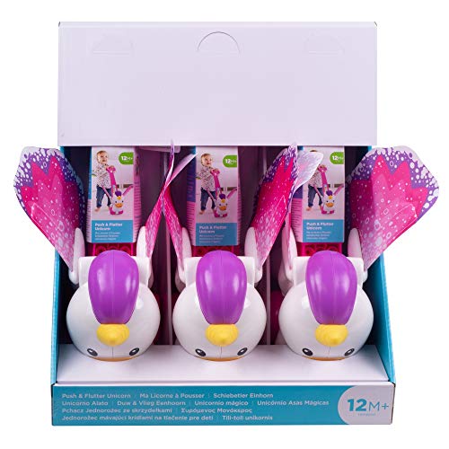Its sweet face, bright colours, and soft wings make the Fisher-Price Push & Flutter Unicorn a magical first friend for your little walker. As your baby pushes the unicorn along, its beautiful wings flap up and down and fun jingle sounds play. They'll love walking here, there, and everywhere with this whimsical pal!Baby walker features:Soft, multicolour wings flutter & flap as baby pushes the unicorn along. Sweet unicorn pal with bright colours. Unicorn jingles as it's pushed along. For ages 6 months and over. Manufacturer's 1 year guarantee. EAN: 887961735550. WARNING(S):Only for domestic use. To be used under the direct supervision of an adult. To prevent possible injury by entanglement remove this toy when the child starts trying to get up on its hands and knees into a crawling position.