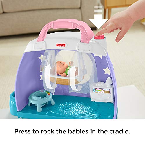 - Comes with 2 babies figures and 3 removable play pieces. Everything stores inside for easy take-along play!​