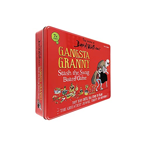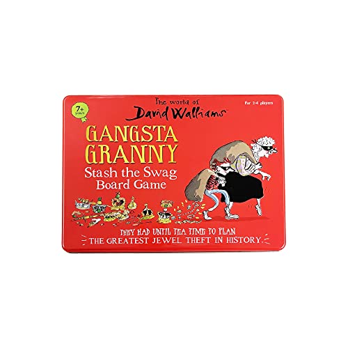 From The World of David Walliams, the new Gangsta Granny 'Stash the Swag' board game is what all David Walliams fans have been waiting for. Can Granny and Ben avoid the Queen and collect and stash all the 'jewels' to be the first to spell out the word Gangsta? A fantastic, easy play family board game that encourages strategic thinking. Based on the World of David Walliams' Best Seller, Gangsta Granny. Fun for all the family and encourages strategic thinking. A fun and engaging, award-winning board game. Quick to set up and easy to play rules. Great entertainment for 2 to 4 players. Contents: 1 x Game Board, 2 x Dice, 4 x Player Pieces, 1 x Queen Piece, 24 Jewel/Letter Cards and Instructions. 2 or more players. For ages 7 years and over. 1 year manufacturer's guarantee. EAN 5012822068651. WARNING(S):Not suitable for children under 3 years old. Only for domestic use. To be used under the direct supervision of an adult.