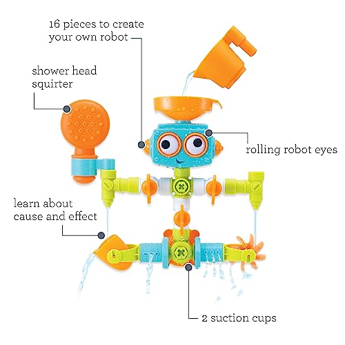 Pour water in the funnel above the robot's head and see his eyes roll. Turn the taps on and off to learn cause and effect. Features: Comes with 2 suction cups. Cup, funnel and shower head are detachable. 16 pieces. Turn the taps on and off to learn cause and effect. Cup, funnel and shower head are detachable. Comes with 2 suction cups. 16 pieces. Size H32, W9, D25.5cm. For ages 10 month and over. 2 year manufacturer's guarantee. WARNING(S):Only for domestic use. To be used under the direct supervision of an adult. Only to be used in water where the child is within its depth and under adult supervision. EAN: 3021105170259.