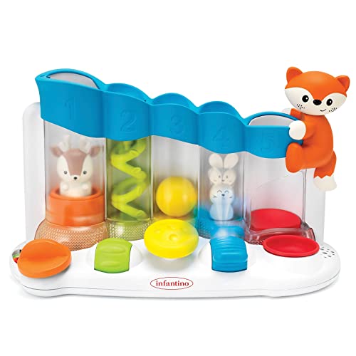The Senso Ball Drop Piano stimulates baby's senses with bright colors, lights, and music. Press, turn, or pull the switches to activate the cute animals' movements and move the ball from tube to tube. 3 Ways to Play: Sounds & Sights : Baby discovers fun sounds and cute movements, building fine motor skills along the way. Music: Baby can create a song by pressing, turning, or pulling the switches. Follow Me: Lights at the base of each tube light up to encourage baby. Includes 13 sound effects, 4 instrument sounds, 4 light effects and 1 song. Size H36, W13, D20cm. Batteries required: 2 x AA (not included) plus . For ages 9 months and over. 2 year manufacturer's guarantee. WARNING(S):Only for domestic use. To be used under the direct supervision of an adult. EAN: 3021105164289.