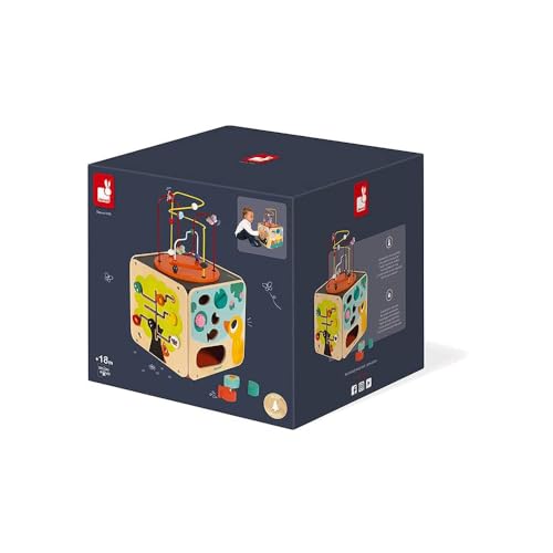 This stimulating activity looping toy is great for giving your little ones a fun and developmental playtime. This multi-activity looping toy is fitted with eight different activities and each side offers a different challenge for your little ones, from a rotating mill full of wooden eggs to a rotating moon button that makes noise to stimulate their hearing. Other sides include- a three-wheel gear, a mirror and a caterpillar with rings that you can flip as well as a labyrinth for developing their dexterity. It has five blocks to fit into place to learn shapes and colours and a looping to help your child develop concentration and motor movement. Product dimensions: 32.5 x 33.2 x 50.3 cm. Size H50.3, W33.2, D32.5cm. Weight 4080g. For ages 18 months and over. 1 year manufacturer's guarantee. EAN: 3700217382568. WARNING(S):Only for domestic use. To be used under the direct supervision of an adult. This toy does not provide protection.