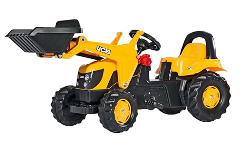 This large chain driven JCB tractor features anti-slip pedals, rugged wheels, a chunky steering wheel, an opening bonnet, rear hitch pin, a front loader that can be released, tipped and scooped and is completed by a large detachable trailer. Suit ages 2.5 – 5 years. Dimensions of item: 161 x 47 x 55 cm. JCB licensed. With a working frontloader that can tip and scoop. Comes with a detachable trailer. Has an opening bonnet. Anti slip pedals. Wide wheels. Size H55, W47, D161cm. Weight 9.4kg. Maximum user weight 50kg. Self-assembly. For ages 2 years and over. Manufacturer's 1 year guarantee. EAN: 4006485023837. WARNING(S):Only for domestic use. To be used under the direct supervision of an adult. Warning! It is illegal to use this vehicle on public highways (roads/pavements): only to be used on private property with the owner's consent.