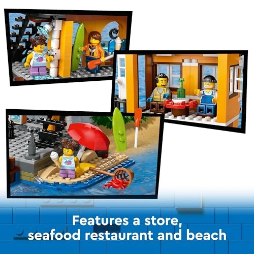 Role-play toys – This LEGO City vehicle set also includes a port with shop and restaurant, water scooter, pedalo and 8 LEGO City minifigures