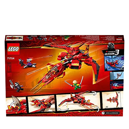 Kids can display this stunning NINJAGO Legacy Kai Fighter plane or play out thrilling scenes as Lloyd and Kai battle to save New NINJAGO City. LEGO® model number: 71704 – for ages 8 years and over. Theme: LEGO NINJAGO. Kai's fighter toy jet from season 3 of the TV series features folding wings, an adjustable cockpit and 2 spring-loaded shooters. Includes 4 LEGO NINJAGO minifigures: ninjas Lloyd and Kai and 2 Nindroid Warrior action figures with a shooter and scary weapons! . Kids can move the jet's wings before taking off, launch missiles from the jet's spring-loaded shooters and fight battles from the cockpit. Kids will be thrilled to build this action-packed, highly posable jet playset before enjoying hours of independent play or fun with friends. Check out other LEGO Ninjago Legacy Storm set – Destiny's Bounty (71705), from Masters of Spinjitzu TV series 3. Size H26.2, W38.2, D5.7cm. For ages 8 years and over. EAN: 5702016616903. WARNING(S):Not suitable for children under 3 years old. Only for domestic use. This product contains FALSE.