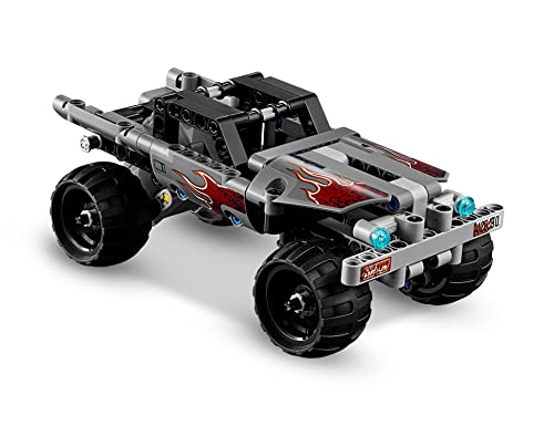 Leave the competition behind with the Getaway Toy Truck! LEGO® model number: 42090. Theme: LEGO Technic. Build a super-rugged Getaway Truck with a powerful pull-back motor, huge chunky tyres, heavy-duty front bumper and an awesome colour scheme with flame stickers for a distinct bad-guy look! . Features a powerful pull-back motor, extra-wide rims, huge chunky tyres, 2 large side-mounted exhaust pipes and a heavy-duty front bumper. Activate the pull-back motor to launch the super-rugged Getaway Toy Truck. Combine this monster truck model with the 42091 Police Pursuit pull-back for action-packed car chases, or to create the Ultimate 4×4 combi model. LEGO Technic construction toys can be built together with all other original LEGO building toy sets and LEGO bricks for creative building. Size H14.1, W7.2, D26.2cm. For ages 7 years and over. Manufacturer's 1 year guarantee. EAN: 5702016369359. WARNING(S):Not suitable for children under 3 years old. Only for domestic use. To be used under the direct supervision of an adult.