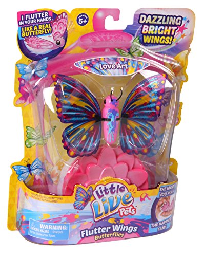 Beautiful Little Live Pets Butterfly is your new pet friend that magically comes alive and flutters in the palm of your hand! Feel how real your new friend feels as it flaps and flitters its stunning wings just for you. Your Little Live Pet Butterfly feeds and gets energy from the included flower base, the more you feed your pet the happier she becomes. With her wings dancing magically in the palm of your hand this is the lifelike pet that every child wants! Take your pet friend with you wherever you go! Series 3 butterflies feature Dazzling Bright wings! With her wings dancing magically in the palm of your hand this is the lifelike pet that every child wants! Six unique and individual butterflies to collect. Choose from Candy Swirl, Rainbow Star, Flutter Heart, Love Art, Confetti Fair and Crystal Bright. Size H22, W18, D5cm. Batteries required: 2 x AA (not included) plus . For ages 5 years and over. Manufacturer's 1 year guarantee. EAN: 630996280423. WARNING(S):Not suitable for children under 3 years old. Only for domestic use.