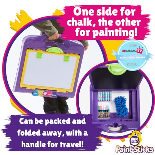 Little Brian Paint Sticks For Kids - Portable Double-Sided Art Station, Paint & Chalk - Whiteboard, Chalkboard, 6 Chalk Sticks, 6 MINI Paint Sticks,...