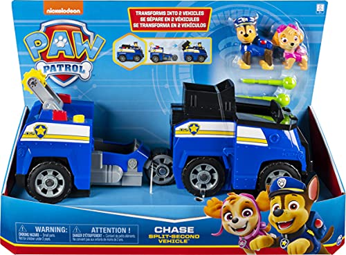 2 COLLECTIBLE FIGURES: The Split-Second Vehicle includes collectible figures of Chase and Skye! Place each pup behind the wheel of the split vehicles and team up for awesome rescues!