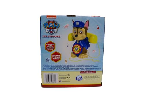 PAW PATROL PHONE. This traditional style phone is designed with the silhouette of Chase . By dialing the numbers and raising the headset you can hear the puppies. By pressing the middle button, the PAW Patrol melody or a ringtone sounds. Includes a callback function.