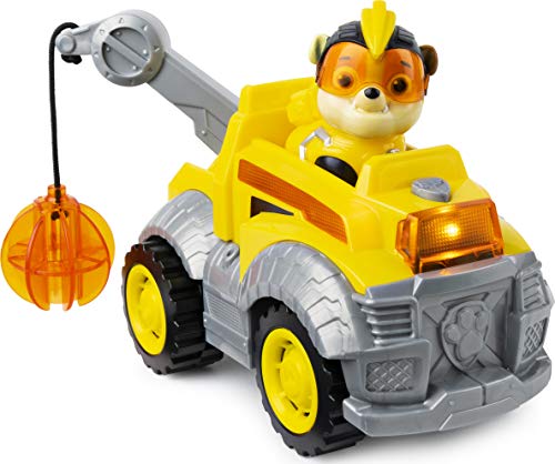 CONSTRUCTION TRUCK TOY WITH LIGHTS AND SOUNDS: Rubble’s truck is ready for mighty action! Knock down obstacles with the wrecking ball and push the button to activate lights and sounds – the vehicle’s accents light up as it makes exciting sound effects!