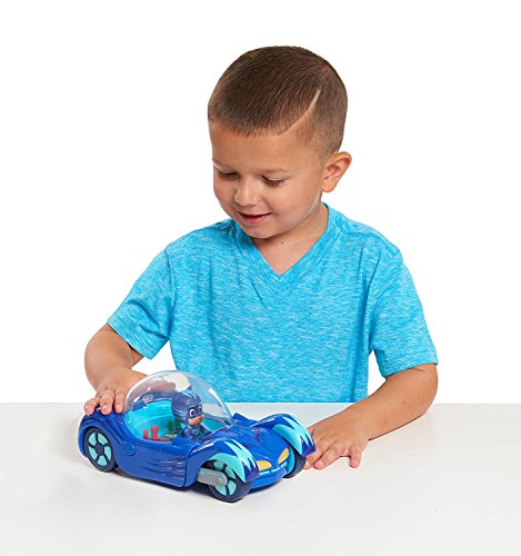 Pounce into action with the PJ Masks Deluxe Cat Car! Hear phrases from your favourite hero and see the headlights light up as you roll into the night to save the day. Roll the Cat Car to activate the pouncing paws and mouth as seen in the show. Vehicle comes with a 7.5cm articulated Cat Boy figure and can accommodate all three PJ Masks 7.5cm figures. Pounce into action with the pj masks deluxe cat car! Plays phrases from the show! Features working headlights! Roll the cat car to activate the pouncing paws and mouth as seen in the show. Size H25.4, W30.5, D14cm. Weight 316g. For ages 3 years and over. 1 year manufacturer's guarantee. EAN: 886144246210. WARNING(S):Not suitable for children under 3 years old. Only for domestic use. This toy does not provide protection.