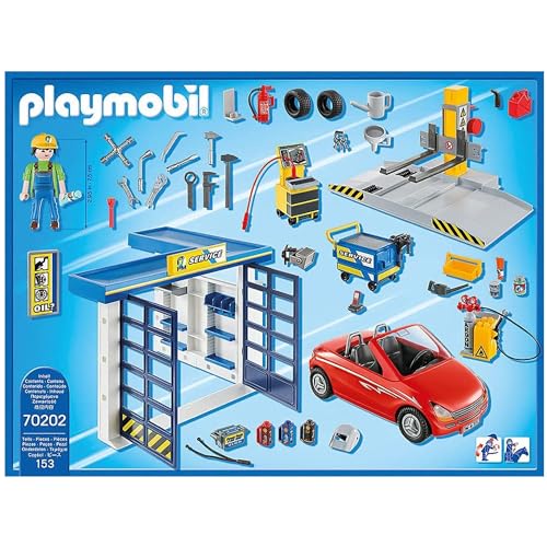 Contents: 1x PLAYMOBIL City Life Car Repair Garage, 153-piece play figure set with instructions: 1 car repair garage with car, 1 figure, 151 accessories, Material: BPA-free plastic, LxTxH: 26x20x21 cm, 70202