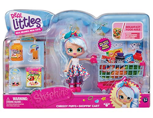 New Your Fav Brands as Shopkins! Shopkins Real Littles are the same brands you find in the supermarkets – just made mini! Meet Chrissy Puffs, the breakfast loving Shoppie who likes shopping with her shopping cart. Also comes with 2 Exclusive Real Mini Packs, 2 Exclusive Real Shopkins and a doll stand for your Shoppie doll. Exclusive Chrissy Puff Shoppie and Real Shopp'n Cart ! This bubbly early riser is dressed for breakfast from head to toe! Size H6, W4, D4.5cm. For ages 3 years and over. Manufacturer's 1 year guarantee. EAN: 8056379078807. WARNING(S):Not suitable for children under 3 years old. Only for domestic use.