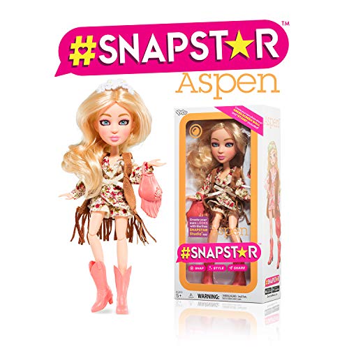 Enter the world of SNAPSTAR, an immersive world of fashion, beauty, music, photography and design where our trendsetting squad of six social influencers define what's next and aspirational. Aspen is a wide-eyed wandere, she is always on the go and doesn't mind living out of her suitcase. Aspen wants to see the world and she wants her followers to come along for the ride! Aspen also loves decorating her place. When it comes to interior decor, all the girls rely on Aspen's expert eye. Includes 1 x 25cm doll, 1 x interchangeable hairstyle, 1 x fashion and matching accessories, adjustable doll stand and foldable screen. Free downloadable SNAPSTAR STUDIO APP that allows girls to style and customize their SNAPSTAR's hair, make-up, eye color and shape, accessories and background scene! 15 points of articulation that allows for striking just about any pose! Changeable hairstyles! Aspen loves photography and will go out of her way to get the perfect pic! To her, life is an adventure and she wants to capture all the beauty that she can! This boho babe is all about her oversized sunnies, ruffled skirts and fringed booties! Size H25cm. For ages 5 years and over. 1 year manufacturer's guarantee. EAN: 8719324071543. WARNING(S):Not suitable for children under 3 years old. Only for domestic use. To be used under the direct supervision of an adult.