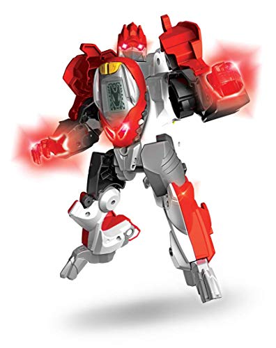2-in-1 which switches between a Velociraptor and Robot! The LCD screen displays animated dino eyes and robot controllers! Action Button stomps the dino legs stomp and swings the robot arms! The Talk Button triggers fun phrases and dinosaur facts! Defender lights up with the responses and plays cool sound effects! Easily switches between Velociraptor and Robot. Acton button! Press to stomp legs (dino mode) or swing arms (robot mode). Lively Dino & Robot sounds and phrases. Educational flash card included. Backlight LCD displays dino eyes and robot contoller. Size H14.6, W16.7, D24.7cm. Weight 420g. Batteries required: 2 x AAA (included) plus . For ages 3 years and over. EAN: 3417765251634. WARNING(S):Not suitable for children under 3 years old. Only for domestic use.