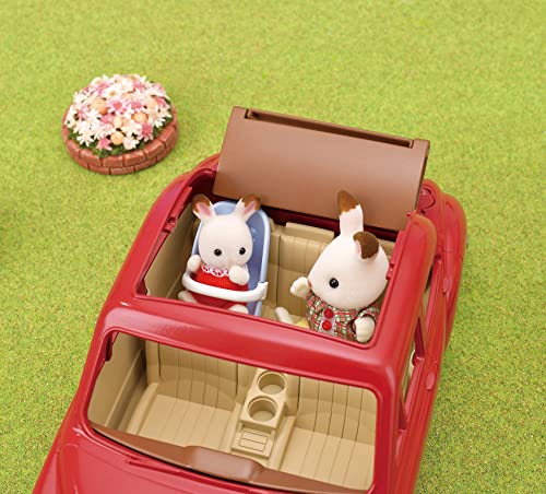 Drive around the village with the five seater convertible Family Cruising Car. Just remove the roof to turn it into an open-top car when sun comes out. The seat of the included baby buggy can be attached to the back seat of the car and used as a baby car seat. The remaining part of the baby buggy can be stored in the boot. The included drinks can be stored in the drinks holder or carried in child figures' hands. Includes: Family Cruising Car, Baby Buggy and Seat, Drink x2 (a total of 5 pieces). A maximum of 5 figures can ride in the car (2 adult figures in the front, 2 child figures and 1 baby figure in the back (sold separately). Good for stimulating imaginative role-play in children. Well-made with fine attention to detail. Sylvanian Families miniature dollhouse, playsets and figures are timeless and classic high-quality toys. Size H10, W25, D12cm. For ages 3 years and over. Manufacturer's 1 year guarantee. EAN: 5054131054482. WARNING(S):Not suitable for children under 3 years old. Only for domestic use. To be used under the direct supervision of an adult.