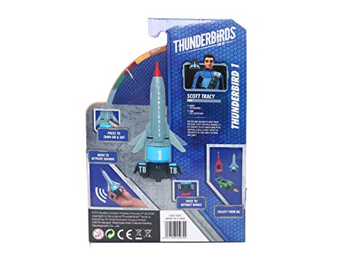 Be the first responder to any situation with Thunderbird 1. Fly the vehicle to hear sounds as it moves. Rotate the thrusters and release the retractable wings to replicate Thunderbird 1's launch. This vehicle also fits inside the amazing Tracy Island Playset so you can recreate all of the International Rescue missions! Size H15.6, W8.35, D8.35cm. Batteries required: 3 x button cell (included) plus . For ages 3 years and over. Manufacturer's 1 year guarantee. EAN: 6971196450792. WARNING(S):Not suitable for children under 3 years old. Only for domestic use.