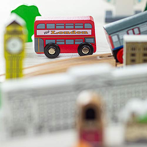 The Tidlo City of London Train Set will delight young railway enthusiasts as they chug the Underground Train around the figure of eight track layout, up and over the hill, dropping keen tourists off at iconic London attractions! The track is not limited to the figure of eight layout – creative youngsters can set up the track in many different ways. With over 50 pieces, this set includes 17 pieces of wooden track, an underground train made, trees, iconic buildings including the London Eye, Buckingham Palace, Big Ben, Harrods and more. Visit iconic London attractions including London Eye, Big Ben, Harrods, the Gherkin & more! Compatible with most other major wooden railway brands, including Bigjigs Rail. Can be used on the floor, table or play mat. Encourages creative & narrative thinking. Made from high quality, responsibly sourced materials. Size H31.5, W47.5, D8cm. For ages 3 years and over. Manufacturer's 1 year guarantee. EAN: 5012824000994. WARNING(S):Not suitable for children under 3 years old. For domestic use only. To be used under the direct supervision of an adult.