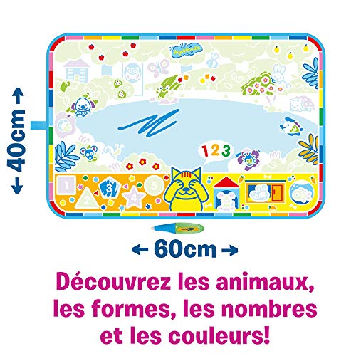 Fill the Aquadoodle pen with water and begin discovering the hidden animals, their homes, shapes and numbers with this colourful mat with lots to explore! Doodle to make new creations or colour in the mat to see your favourite animals and objects come to life! Use the numbers and shapes at the bottom of the mat to play learning games. When play time is over simply roll it up and put it away. My First Discovery is part of Aquadoodle range of water drawing mats aimed at kids from 6mths to 3 years of age. Mat size: 60 x 40cm. Size H3, W60, D40cm. Weight 0.12g. For ages 18 months and over. 1 year manufacturer's guarantee. EAN: 5011666730762. WARNING(S):Only for domestic use.