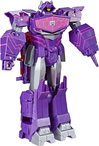 TRANSFORMERS CYBERVERSE CHARACTER: Classic purple Shockwave toy robot inspired by the twisted Decepticon scientist from the Transformers Cyberverse cartoon, as seen on Cartoon Network and YouTube.