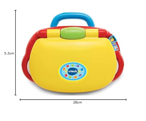 Lift the lid and start learning with the VTech Baby's Laptop! The nine press buttons introduce animals, shapes and colours while the abc button introduces letter sounds to your baby. Move the fun directional mouse in any direction and watch the LCD screen light-up in the same direction as the mouse! Baby's laptop includes 3 modes of play: animals, shapes and music. 9 chunky buttons with a light-up LCD screen. Includes a moveable mouse that moves in all directions for fun laptop role-play. Includes 3 sing-along songs and 20 melodies. English speaking voice. Size H22, W28, D1.5cm. Weight 0.61g. Batteries required: 2 x AA (included) plus . For ages 6 months and over. 1 year manufacturer's guarantee. EAN: 3417761912034. WARNING(S):Only for domestic use. To be used under the direct supervision of an adult. This toy does not provide protection.