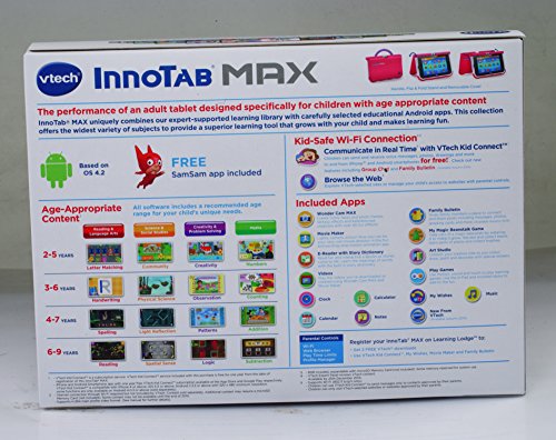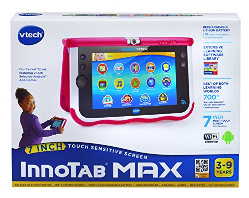 Innotab Max is the next generation in children's interactive play! An even faster console features a 2MP camera, Kid Connect Premium app, wi-fi, kid-safe internet browser, Movie Maker app, media player, e-books and lots more. Connect to the VTech Learning Lodge to download videos, music, apps, e-books, games and more! Features wish list so children can list requests and send to parents. Visualisation and memory, sensory development, hand eye co-ordination, language development, discovery and exploration, imaginative play, word building, cognitive development, creative play, reading comprehension, problem solving, basic maths skills. All new faster and even more powerful Innotab console! Bonus free unlockable features include secure internet browser, Kid Connect Premium app, Movie Maker, Magic Beanstalk game and Art Studio. VTech tablets & handheld devices include Time Limit controls which can be used to set the amount of time your child is allowed to play on the device or to mark certain areas of the day as off limits. This feature can be found in the Parent Settings/Settings menu and we recommend this is used. For more information and some easy to follow tips on screen time for both parents & children please refer to – https: //www. Vtech. Co. Uk/screentime. Size H22.7, W14.6, D2.9cm. Batteries required: 1 x rechargeable (included) plus . For ages 3 years and over. 1 year manufacturer's guarantee. EAN: 3417761668535. WARNING(S):Not suitable for children under 3 years old. Only for domestic use. This toy does not provide protection.