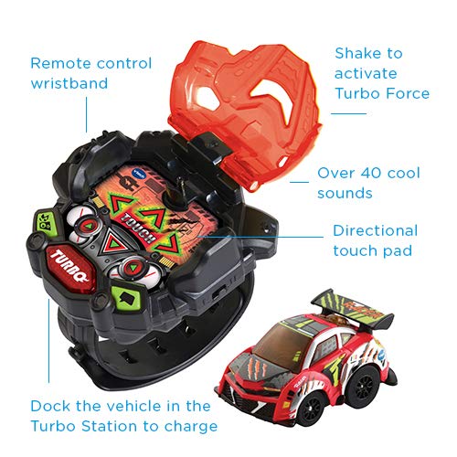 Speed into playtime with this portable remote control vehicle which you control from the Turbo Station wristband. The vehicle charges while docked in the Turbo Station but to charge the vehicle's turbo fuel you just need to shake the wristband, then see it zoom off with a turbo boost at the press of a button. Extra buttons on the Turbo Station trigger interactive responses to add to the fast-paced fun. Portable remote control vehicle controlled from the wristband. Vehicle charges whilst docked in the wristband. Shake to charge for a turbo boost! Includes interactive responses! Size H25, W7, D5cm. Weight 20.5g. Batteries required: 2 x AAA (included) plus . 4 assorted characters to collect – 1 supplied. For ages 4 years and over. 1 year manufacturer's guarantee. EAN: 3417761982037. WARNING(S):Not suitable for children under 3 years old. Only for domestic use.