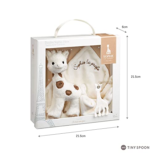 The perfect companion throughout the day! With the help of her tail, Sophie holds a sweet embroidered comforter! Light and easy to grasp, it's the perfect companion for cuddling times and bed time. Made of two very soft textiles for variation of touch feeling. Contrasting coloured spots over Sophie's body, makes it easy for Baby to recognize his comforter amongst his other toys. Packaged in its' gift box, it's an ideal gift for any newborn! 1 pack. Friendly character. Soft. Cuddly. Comforter. Easy to hold. Suitable from birth. Manufacturer's 1 year guarantee. EAN: 3056568507342.