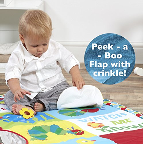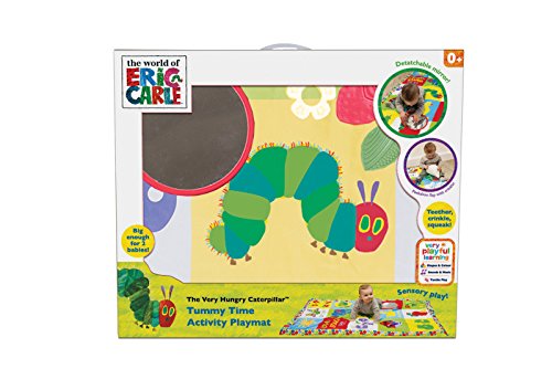 This large The Very hungry caterpillar activity playmat is suitable from birth and packed with activities to help stimulate babies senses as they grow. Includes detachable baby safe mirror, 2 removable shaped teethers, a cute peek a boo flap with crinkle and a squeaky duck! This mat is extra large in size so easily fits two babies and is hand washable. Hand washable. Size H143, W100, D2cm. Weight 650g. Suitable from birth. 1 year manufacturer's guarantee. EAN: 5014475013552. WARNING(S):Only for domestic use.